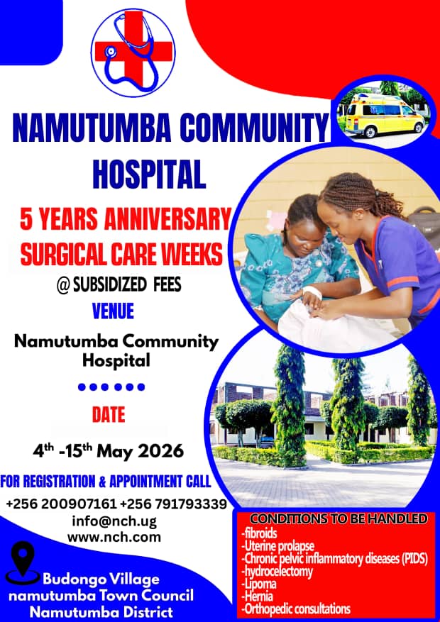 From 4th to 15th May 2026, we are offering life-changing surgical services at subsidized costs, making quality healthcare more accessible to everyone in Namutumba and beyond.